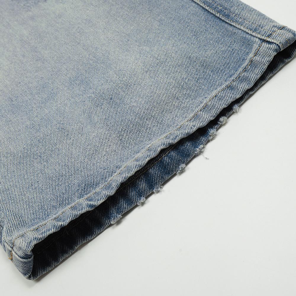 Punk Gradient Wash White Denim Straight Trousers High Street Men's Fashion Ripped Holes Old Wear Loose Wide Leg Pants
