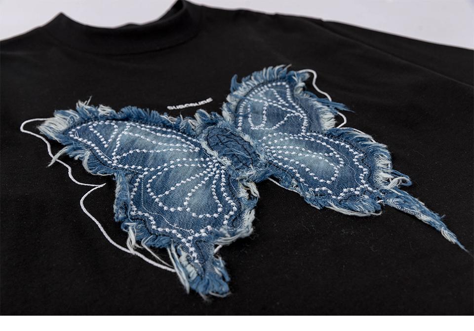 Streetwear T Shirts Oversize Butterfly Embroidery Loose Short Sleeve Cotton Tee Casual O Neck Summer Simple Design