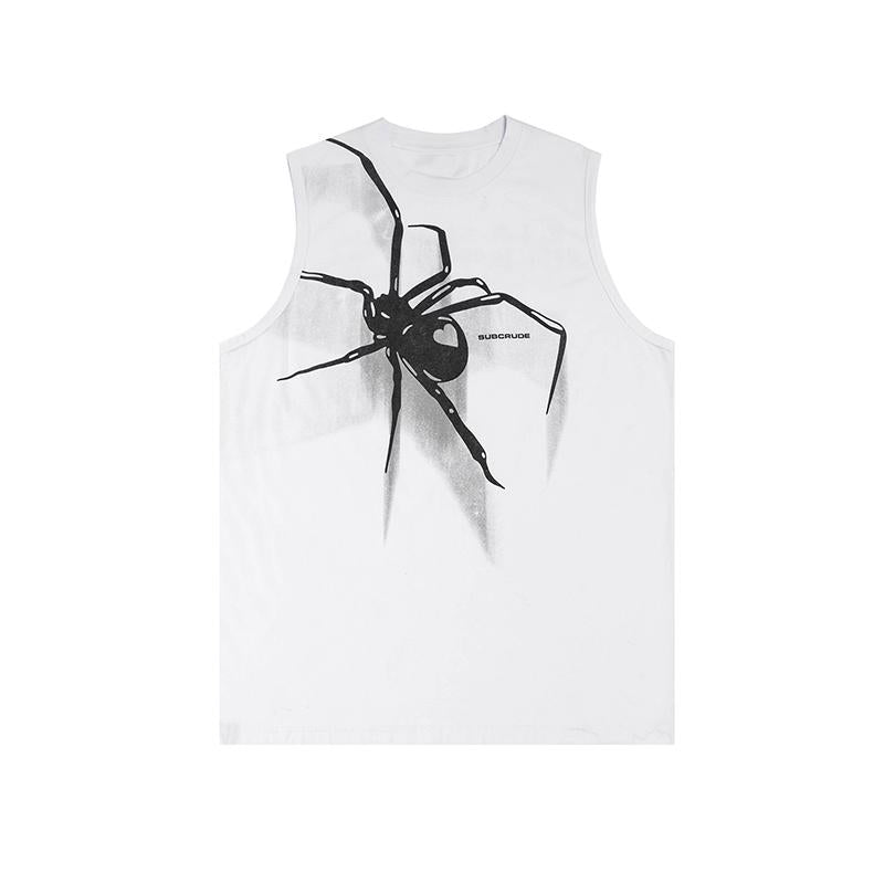 Tank Top Sleeveless Spider Graphic Round Neck Black White Cotton T Shirt Loose Basketball Breathable Tees