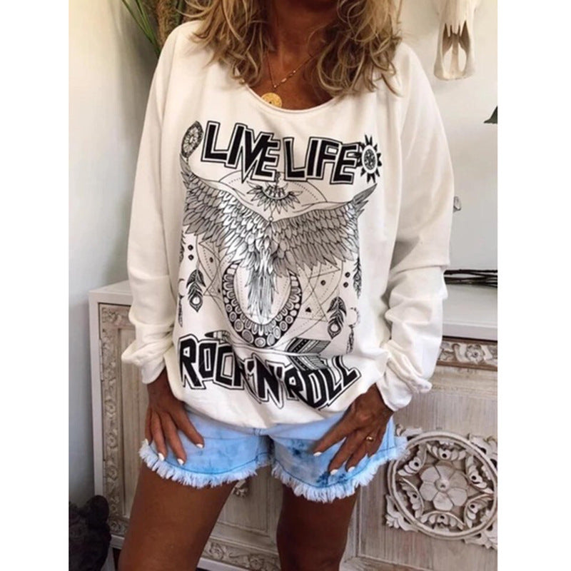 Women Loose Round Neck Printed Sweater
