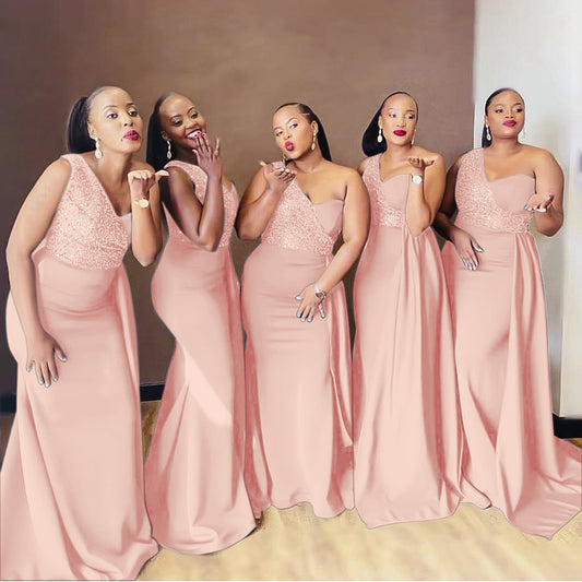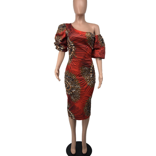 New European And American Foreign Trade African Women's Sloping Shoulder Sexy Long Dress