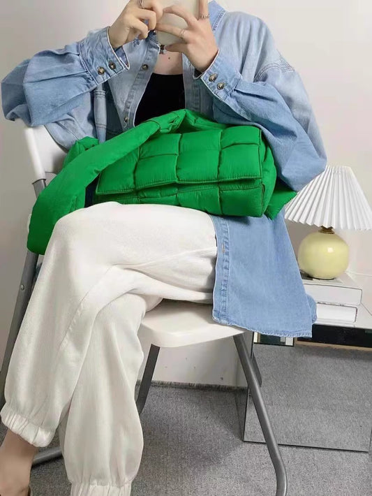 Single Shoulder Crossbody Sponge Woven Diamond Plaid Pillow Bag