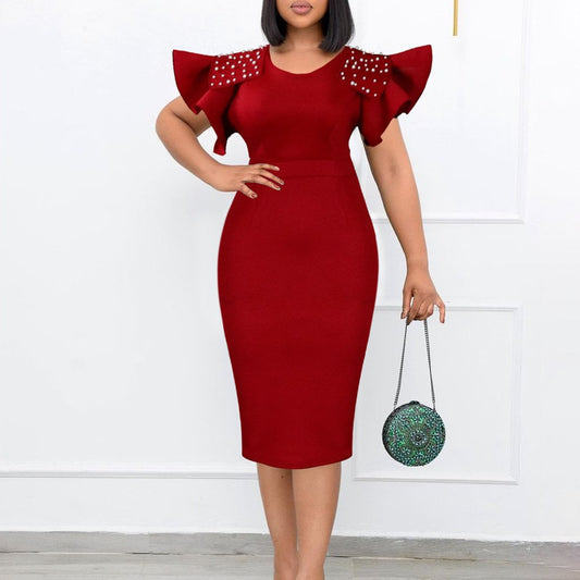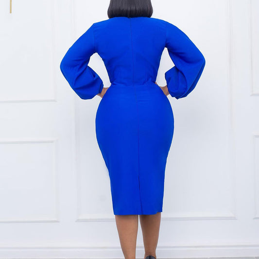AB10ATE European And American Women's 2021 Foreign Trade New Amazon Solid Color Professional Office Foreign Trade Plus Size Cross-border Dress