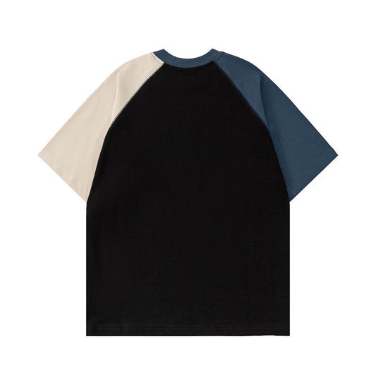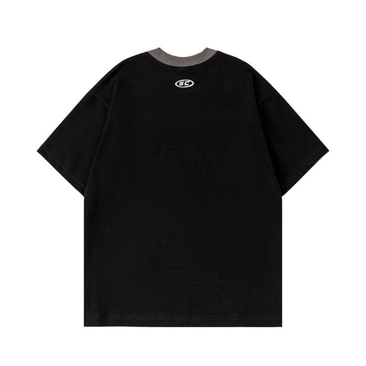 Streetwear T Shirts Oversize Patchwork Loose Short Sleeve Cotton O Neck Summer Simple Design Tee Casual