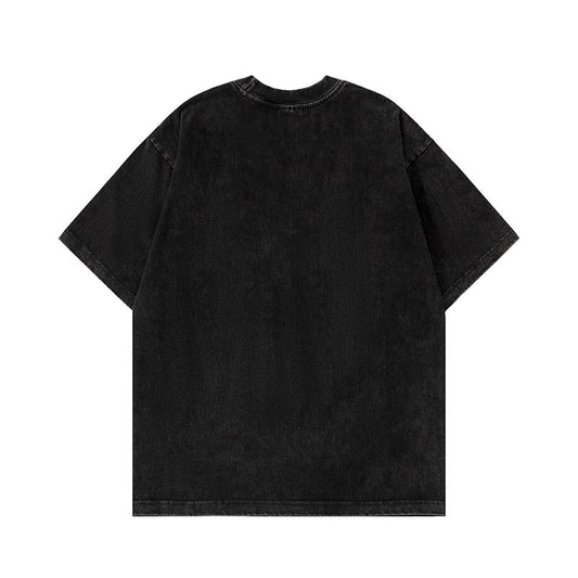 Streetwear Ship Graphic T Shirt Washed Loose Tees Hip Hop Fashion Summer Casual Top Short Sleeve Black