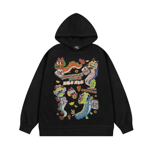 American Retro Hooded Sweater 2024 New Cartoon Year Of The Dragon Printed Hoodie Loose Sweater