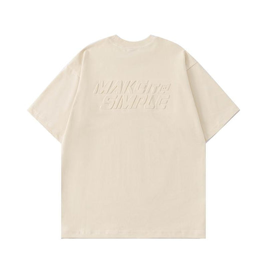 Streetwear Letter Embossed T Shirts Oversize Loose Short Sleeve Cotton Tee Casual O Neck Summer