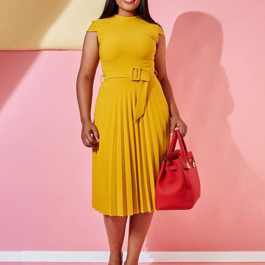 AB10ATE D459 New European And American Cross-border Women's Fashion Elegant Pleated Skirt Elegant Solid Color Plus Size Foreign Trade Dress